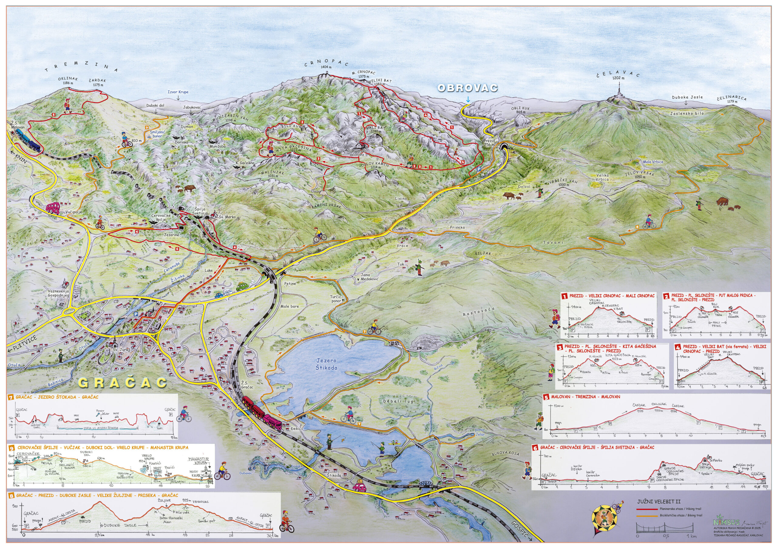 „TRASIRANJE I MAPIRANJE TRAIL STAZA I BICIKLISTIČKE STAZE – JUŽNI VELEBIT – II DIO“ realiziran je 16. prosinca 2025. te su sredstva utrošena namjenski. Od strane Nimbus d.o.o. pregledan je teren, odabrane su staze, snimljen GPS trag te je izvršena grafička priprema i crtanje i likovno oblikovanje panoramsko turističke karte. Karta je tiskana u 10.000,00 primjeraka. Planinarsko društvo „Kamenjak“ Rab izvršilo je čišćenje i trasiranje izabranih staza. U sklopu projekta uređeno je 6 trail staza i 3 biciklističke staze na području Gračaca. Biciklistička staza Cerovačke špilje-Vučjak-Duboki dol-vrelo Krupe-Manastir Krupa zahtjevala je samo sitno čišćenje raslinja pošto je bila obuhvaćena prošlogodišnjim projektom, te kao takva spaja područje Obrovca i Gračaca u jednu cjelinu pošto je staza nacrtana i iz gračačke perspektive.
